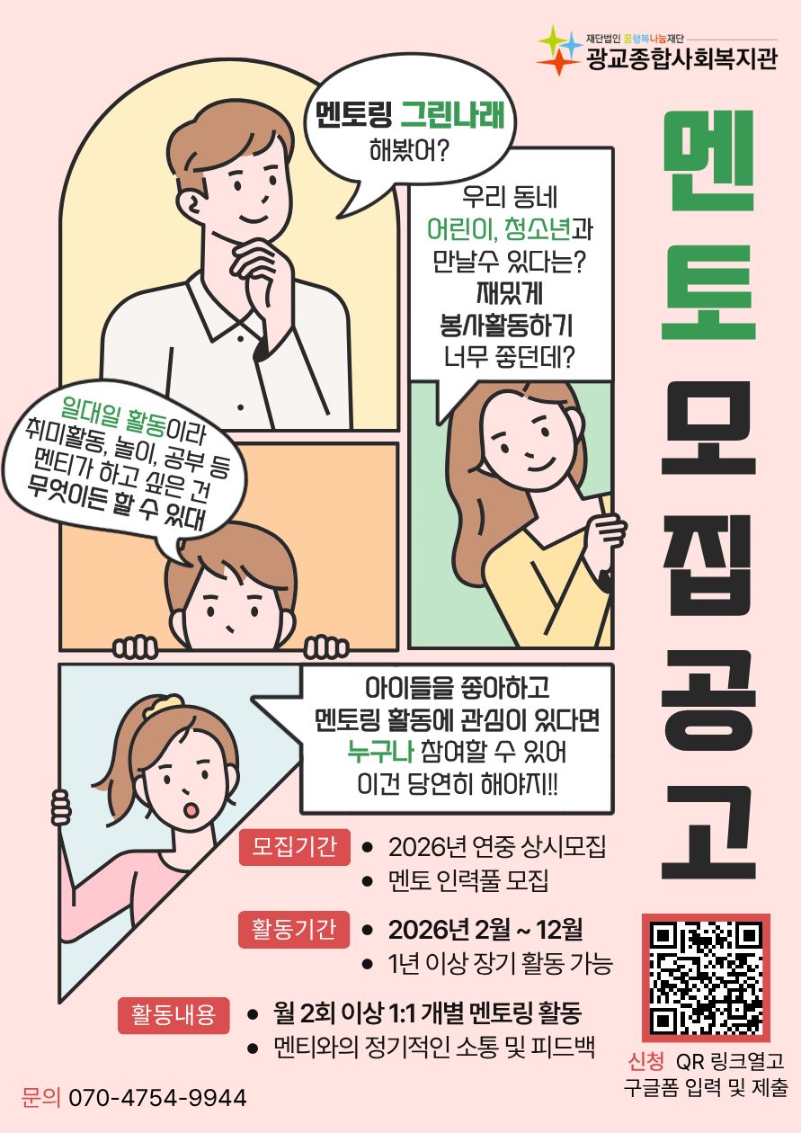 제목 2026년 아동청소년 정서지원 멘토링 그린나래 "멘토" 자원봉사자 모집