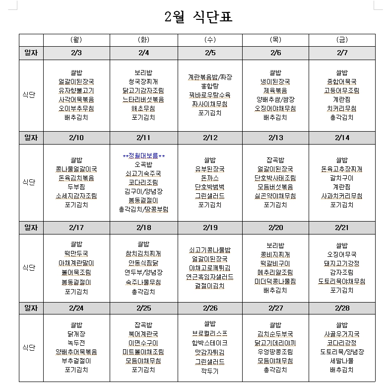 2월 식단표_게시.hwp 다운로드